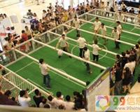 脚踢式台球,这款设备结合了足球的踢法和台球的游戏规则,让人们站在一张巨大的桌球台上进行游戏,这张桌球台的尺寸为6.6.3.6*0.2m的,一次能供最多四个人一起玩..